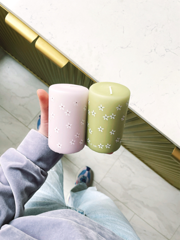 Een lichte, lila tint stompkaars met een vrolijke print van bloemen! Het bloemen dessin is een met de hand getekend ontwerp wat vervolgens met aandacht & precisie op de kaars gedrukt wordt. Een vrolijk, sfeervol accent voor thuis & natuurlijk heel leuk als cadeautje!