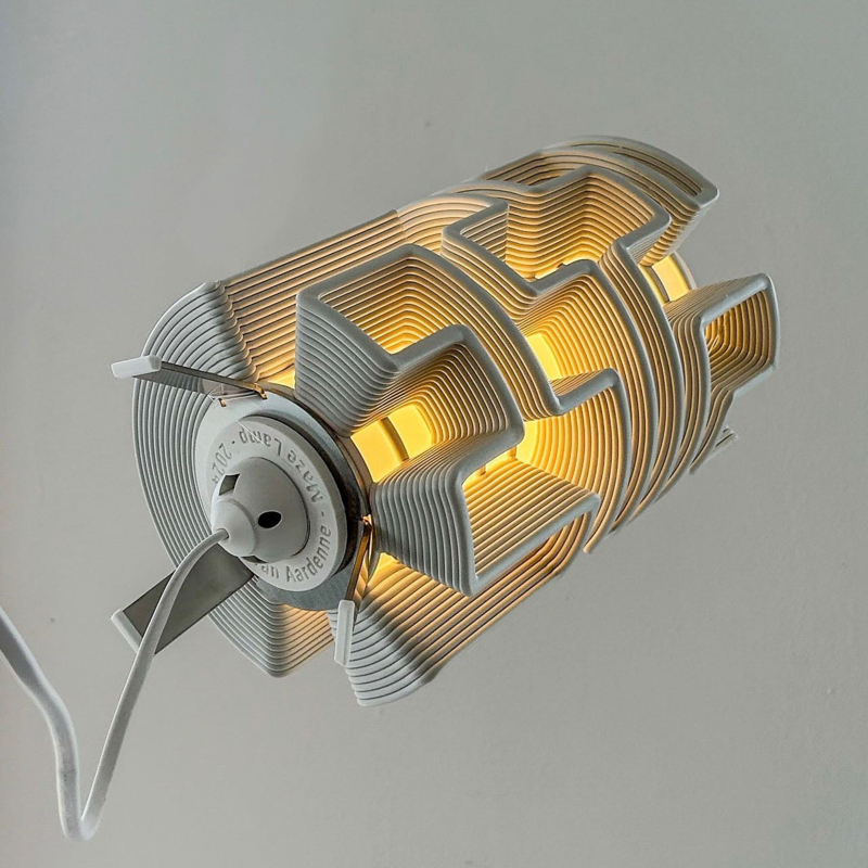 Deze 3D-geprinte lamp van de Rotterdamse ontwerper Stijn van Aardenne is gemaakt van gerecylclede koelkasten! Een bijzonder materiaal in een bijzondere vorm, de grafische, voor het gevoel oneindige lijnen van de maze lamp hebben een uniek effect. De lamp wordt met een snoer aangesloten op het stopcontact, aan het snoer van circa 150 cm lang zit een aan/uit schakelaar. De lamp in de maze lamp heeft 2 kleurtinten, een warme en een koele toon, door de aan/uit schakelaar om te zetten wissel je makkelijk tussen deze 2 kleuren.