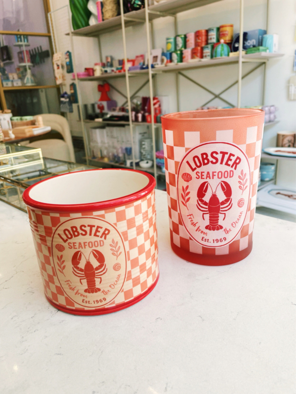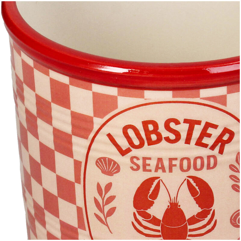 Deze vrolijke, sfeervolle bloempot met een afbeelding van een kreeft heeft echt die retro uitstraling. De tekenstijl, typografie en het geblokte dessin maken er een heel grafisch geheel van, uitgevoerd in verschillende rode tinten. Een hele leuke bloempot om bijvoorbeeld in de keuken te gebruiken!