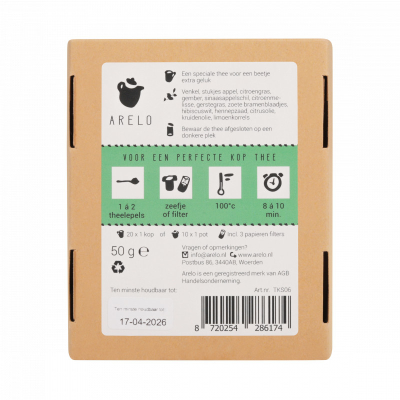 Een heerlijke, kruidige thee voor iemand die wel een beetje extra geluk kan gebruiken! Wens iemand een beetje geluk met een lief gebaar, in de vorm van dit pakje losse theebladeren. Of die echt geluk brengt durven we niet te garanderen, maar ontspannen worden ze vast wel van zo'n unieke kruidenthee met venkel, appel en citroenmelisse.
