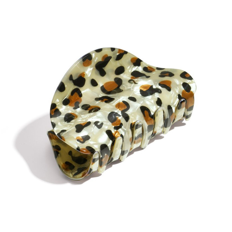 Haarklem classic beige zwart gevlektEen eenvoudige, klassieke haarklem die makkelijk met verschillende zachte tinten combineert. De claw clip heeft een mooi, vlekkerig kleurverloop in zachte roze en beige tinten.
